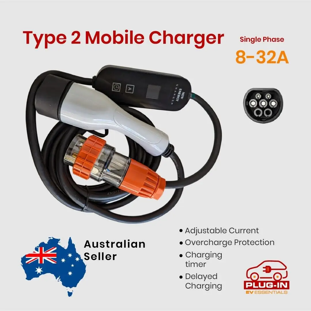 Brand new Type 2 portable charger for Tesla, MG, BYD, Hyundai, Kia, Polestar electric vehicles. This single-phase 32A charger comes with a 5m cable and a carrying bag for easy transportation. The charger features delayed start, timer, scheduled charging, water-resistant, overheat protection, and overcharge protection, ensuring safety and reliability during charging.